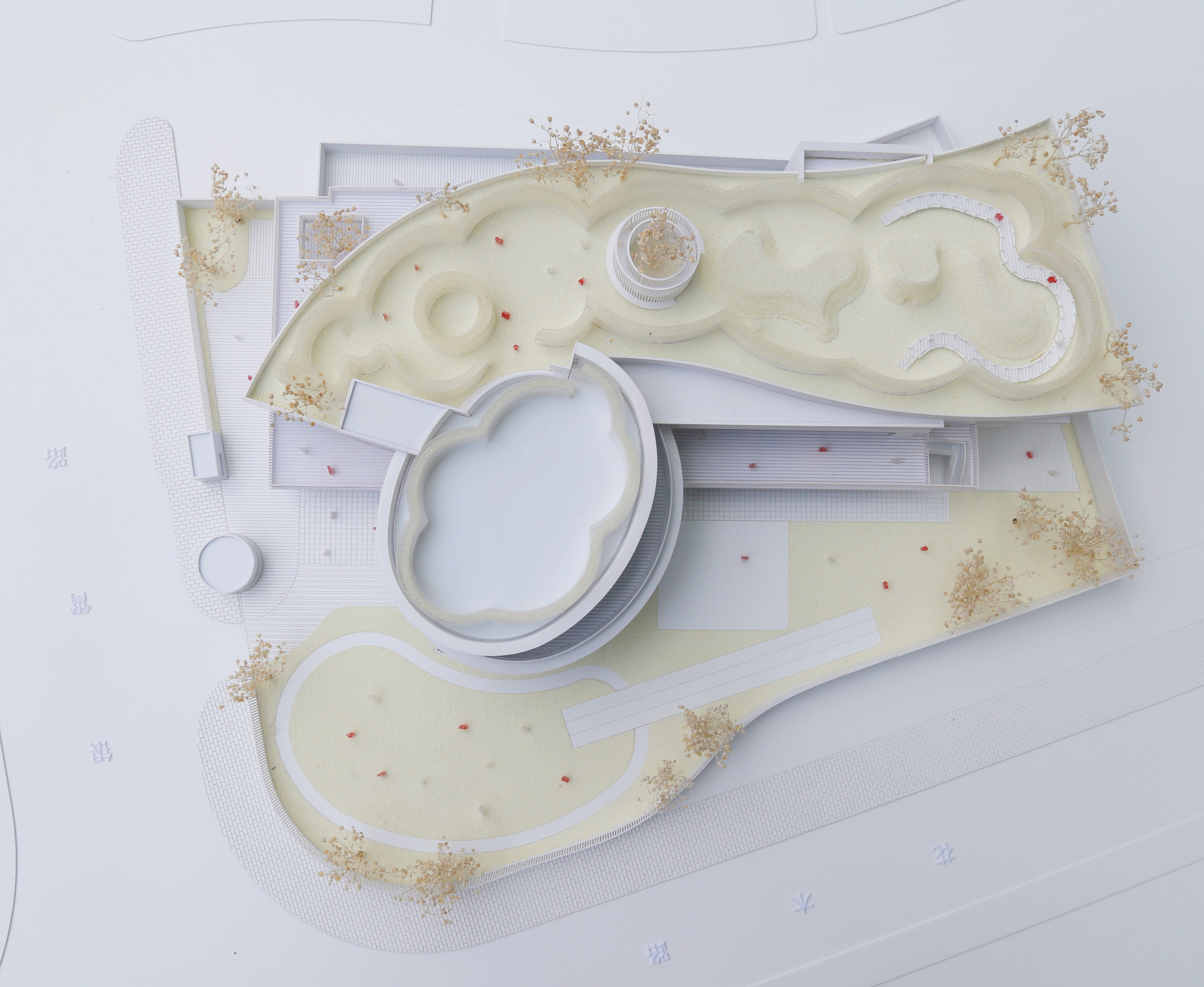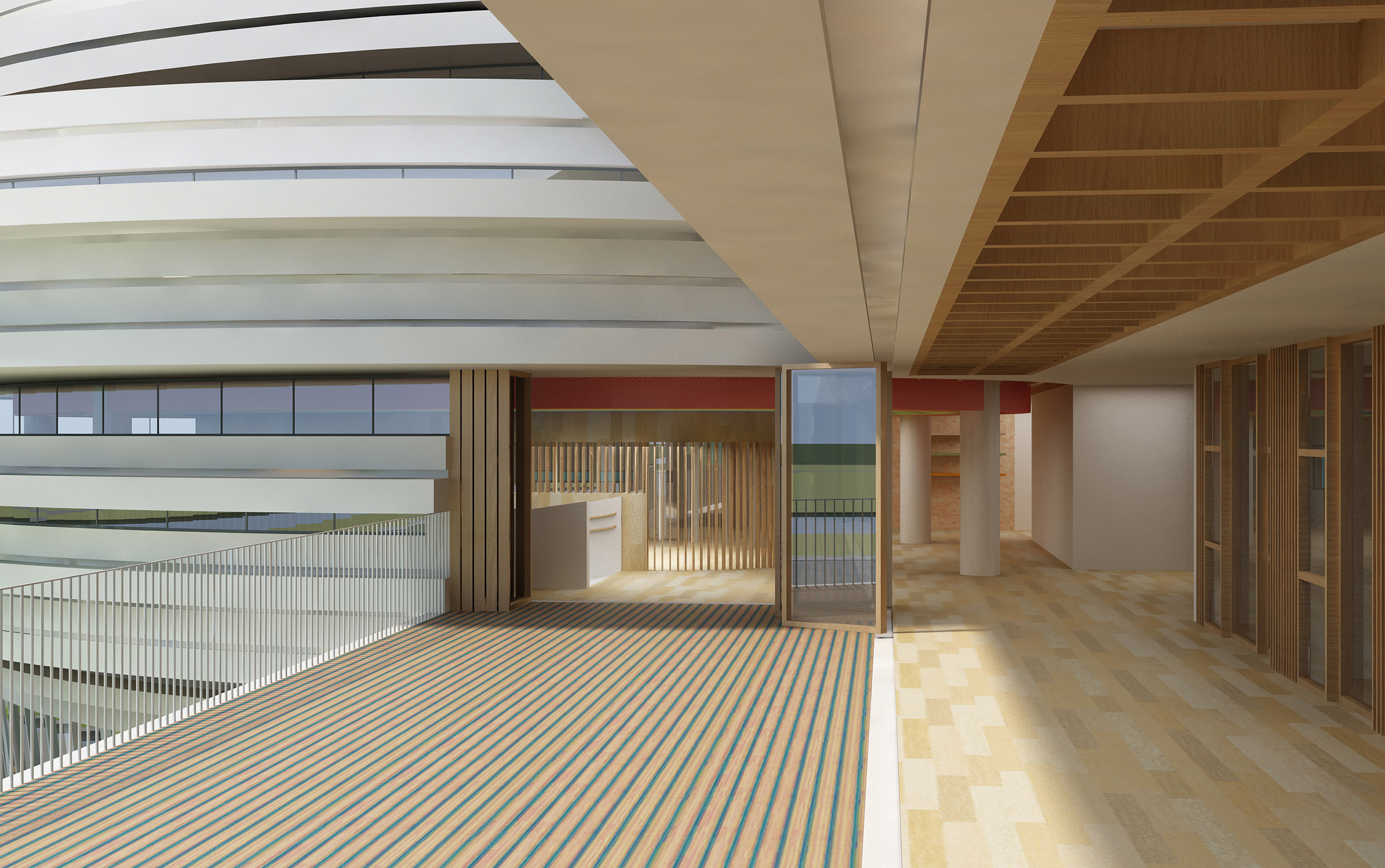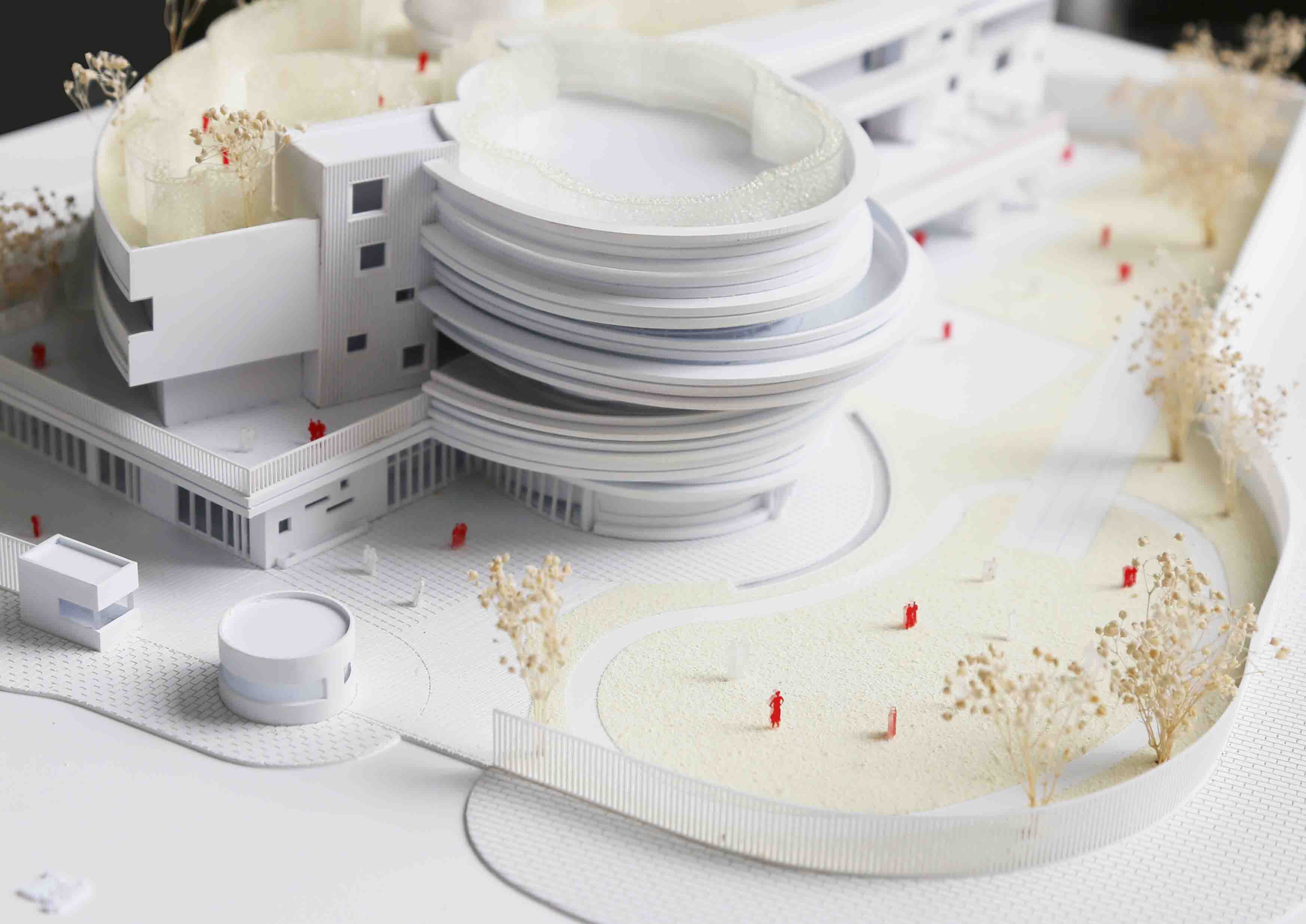 On the basis of the original building framework, the kindergarten cantilevers the entrance circular space to each direction with ellipses as units. The children are brought to the second floor through the ramp inside the space, and the circular circulation is formed through the cantilevered elliptical corridor. At the same time, the belt window is open on the circular circulation, bringing the forest in the century park into the circular space. The north and south directions of the activity room are given way to form a semi-outdoor activity platform, and a more complete circular circulation is formed with the elliptical ring corridor, so that the children can run and play without restriction. The prominent platform introduces the green landscape of the outdoor century park into the kindergarten space, and also blurs the internal and external space. On the other hand, the backstage also effectively blocks the direct light and forms air circulation, creating a more comfortable and natural space for children.