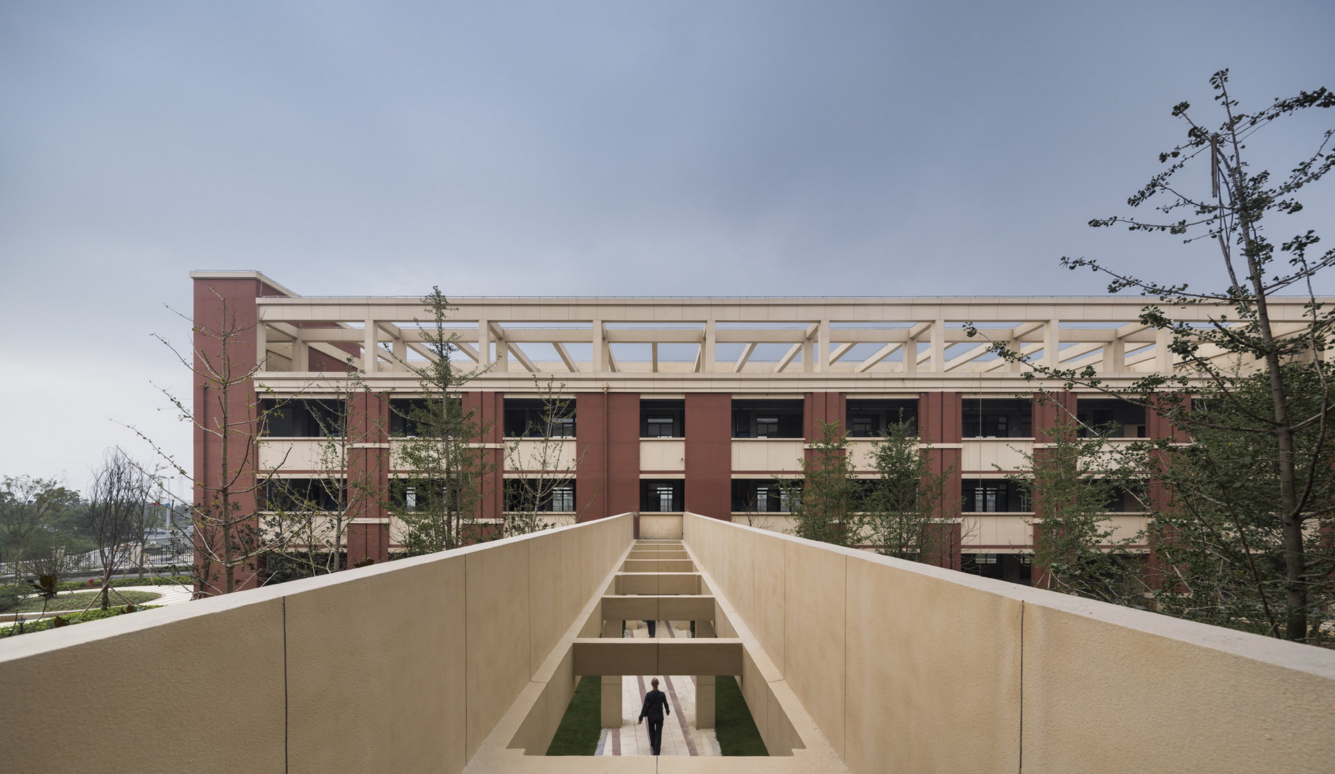 The combination of Chinese enclosed space and western open space is the main characteristic of the project. Secondly, the project uses the axis relationship to form a rational connection between the city and the campus. The site form introduces two axes, horizontal and vertical, the horizontal axis points to Ningbo Airport and the vertical axis points to Ningbo City.