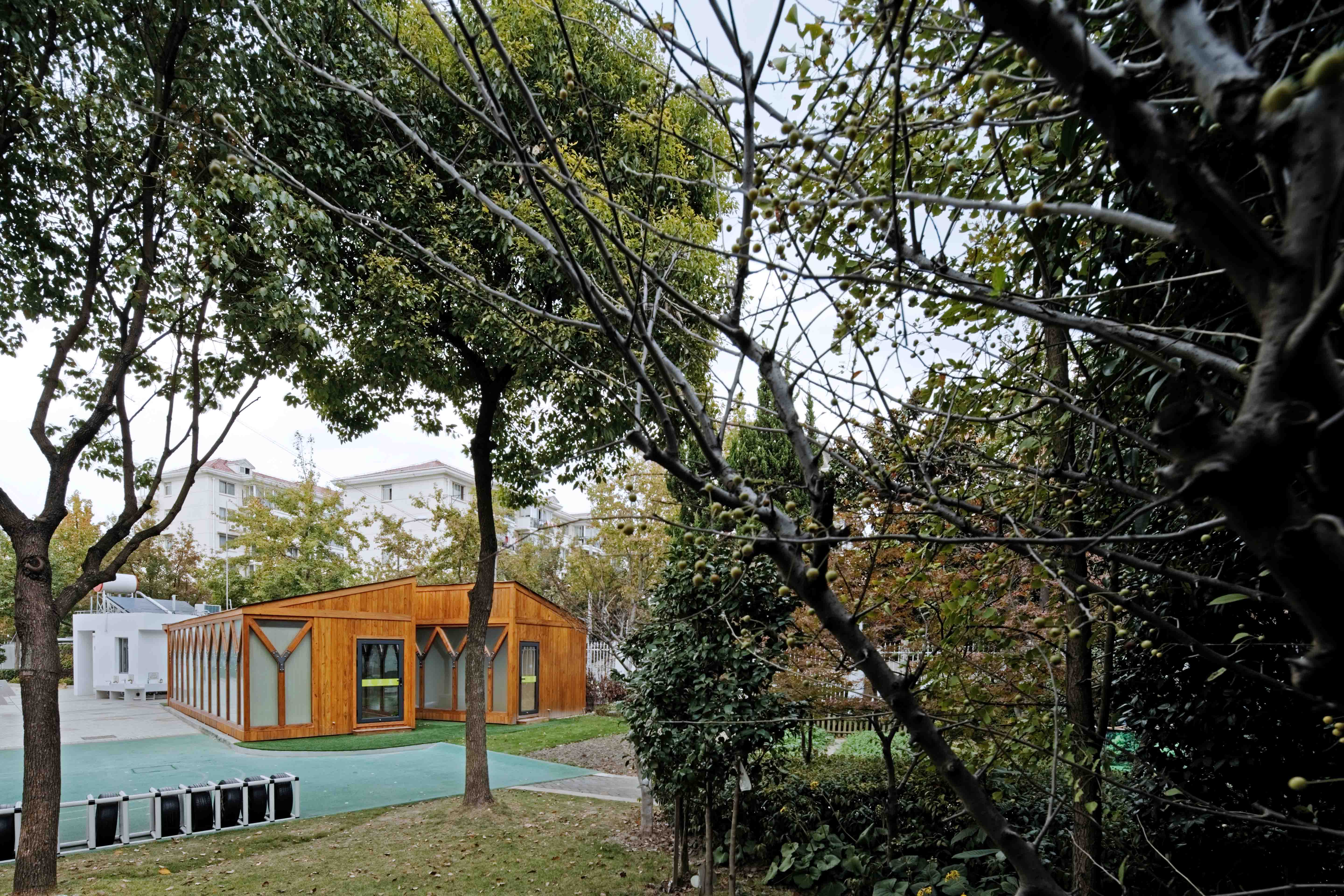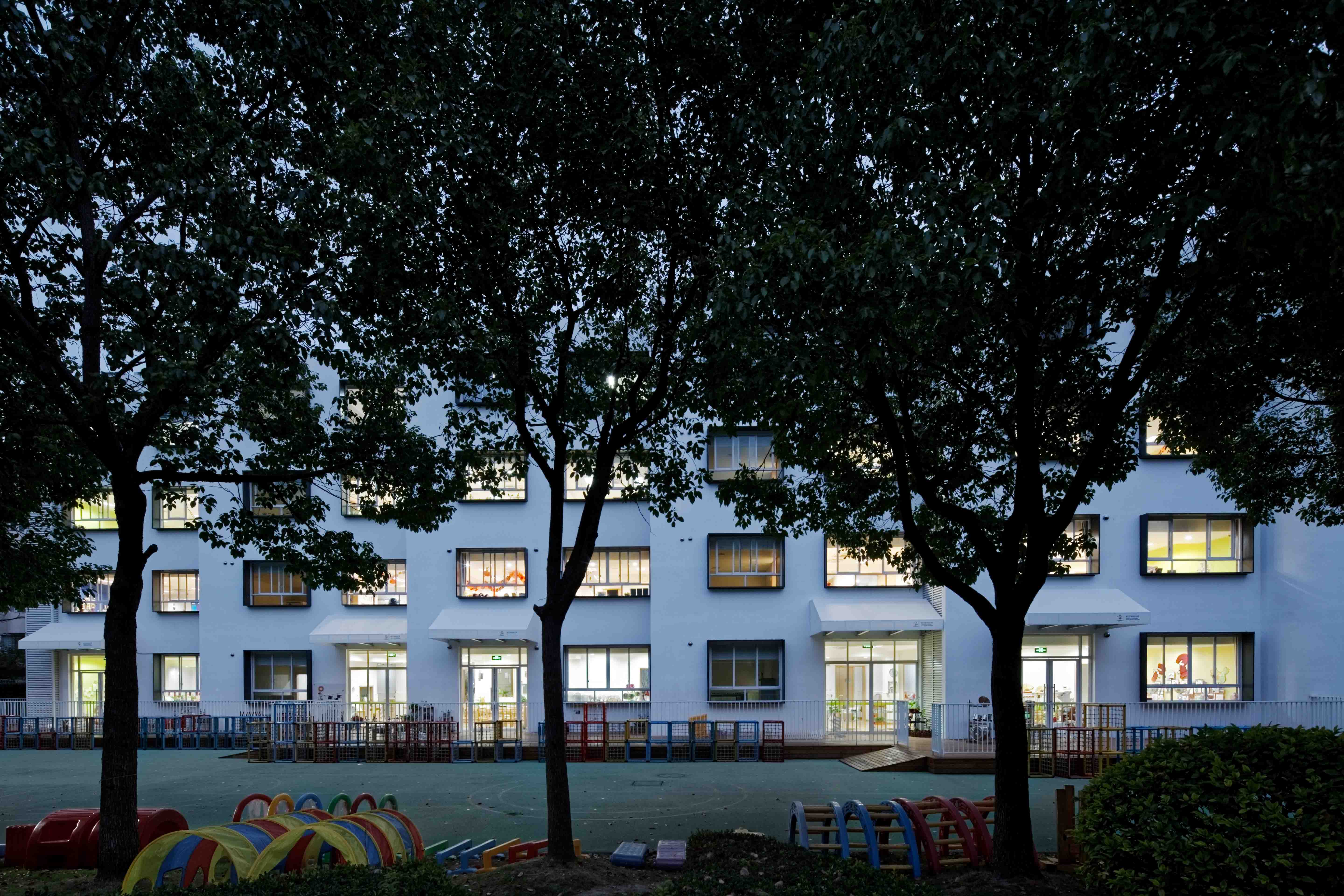 The project is located at 28 Jialing Road, Xuhui District, Shanghai. The kindergarten used to be a primary school. The building as a whole is not very shabby, and the facade is mainly decorated with light red imitation stone tiles and beige paint. The Windows of corridors, classrooms and other functional Spaces are evenly arranged with sliding Windows of equal size less than one meter above the ground. The original campus does not have affinity and vitality, and lacks imaginative space and creative space.