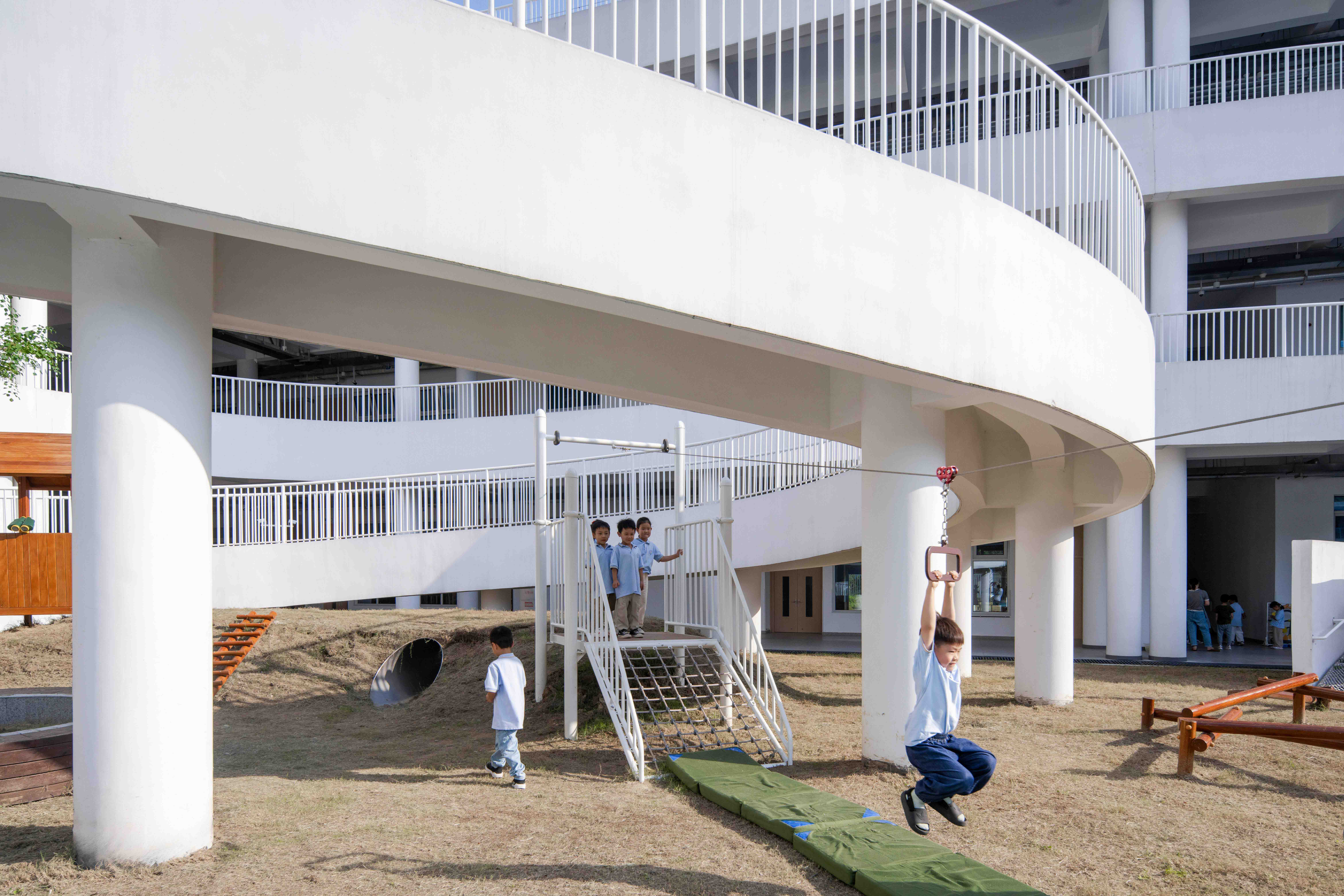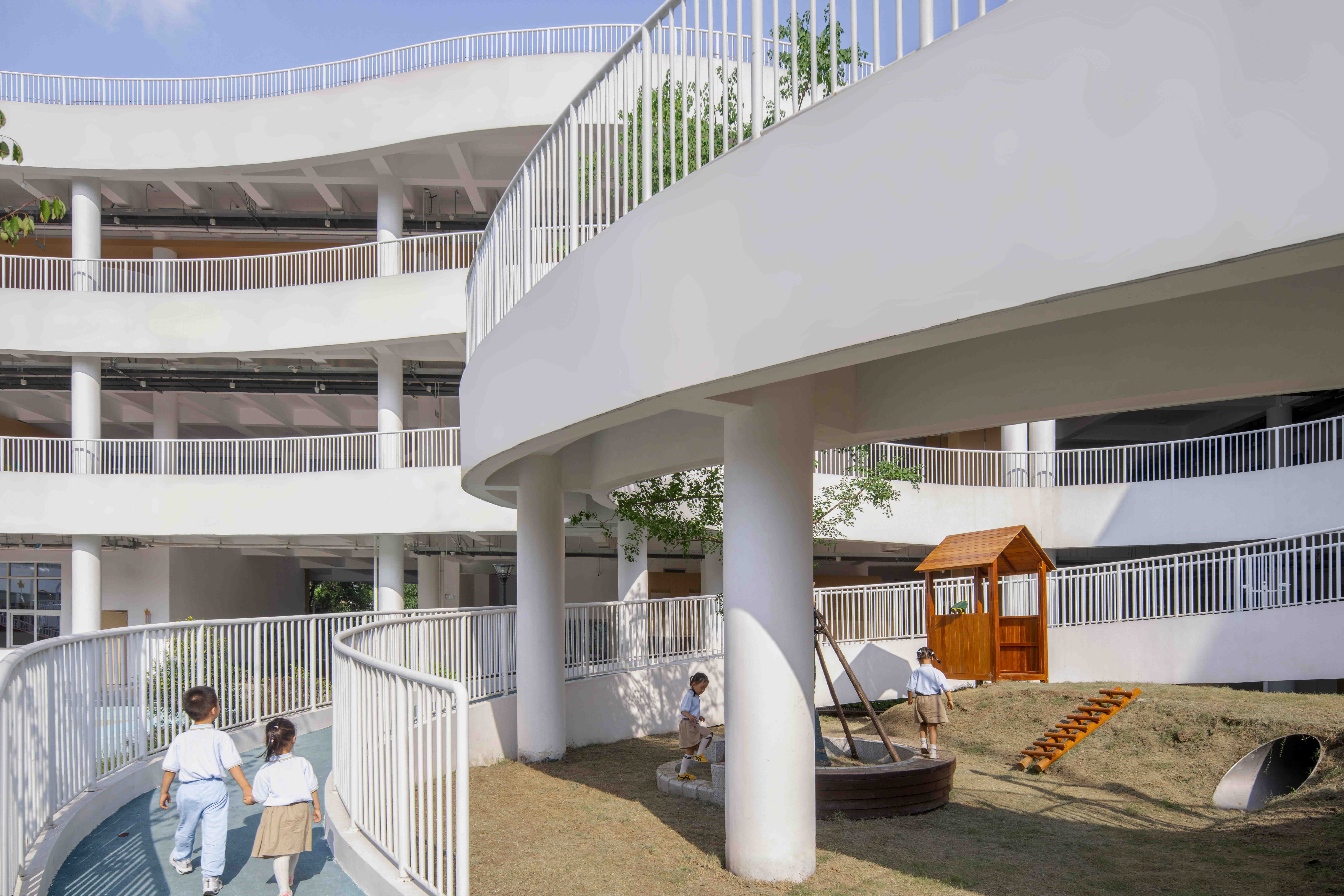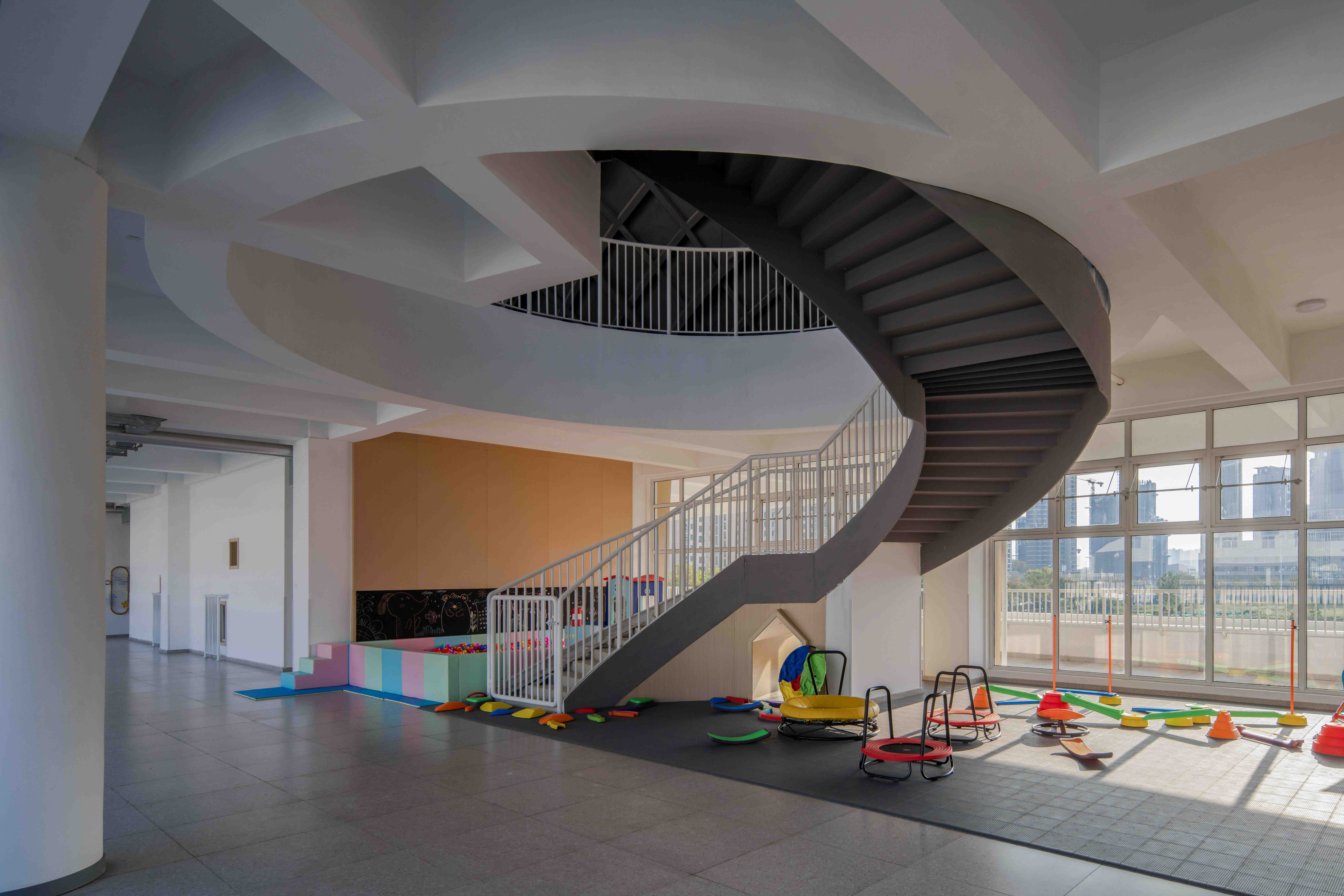 The kindergarten circulation is closed in a “loop” cycle, without end and starting point. Children like to run around in this endless circular space. Here they play like a cat chasing its tail. For children, running around is an innate motivation, growing up and discovering in running. Children will move in accordance with certain patterns. If the environment they are in can adapt to these patterns without any prompt, children will start to explore spontaneously.