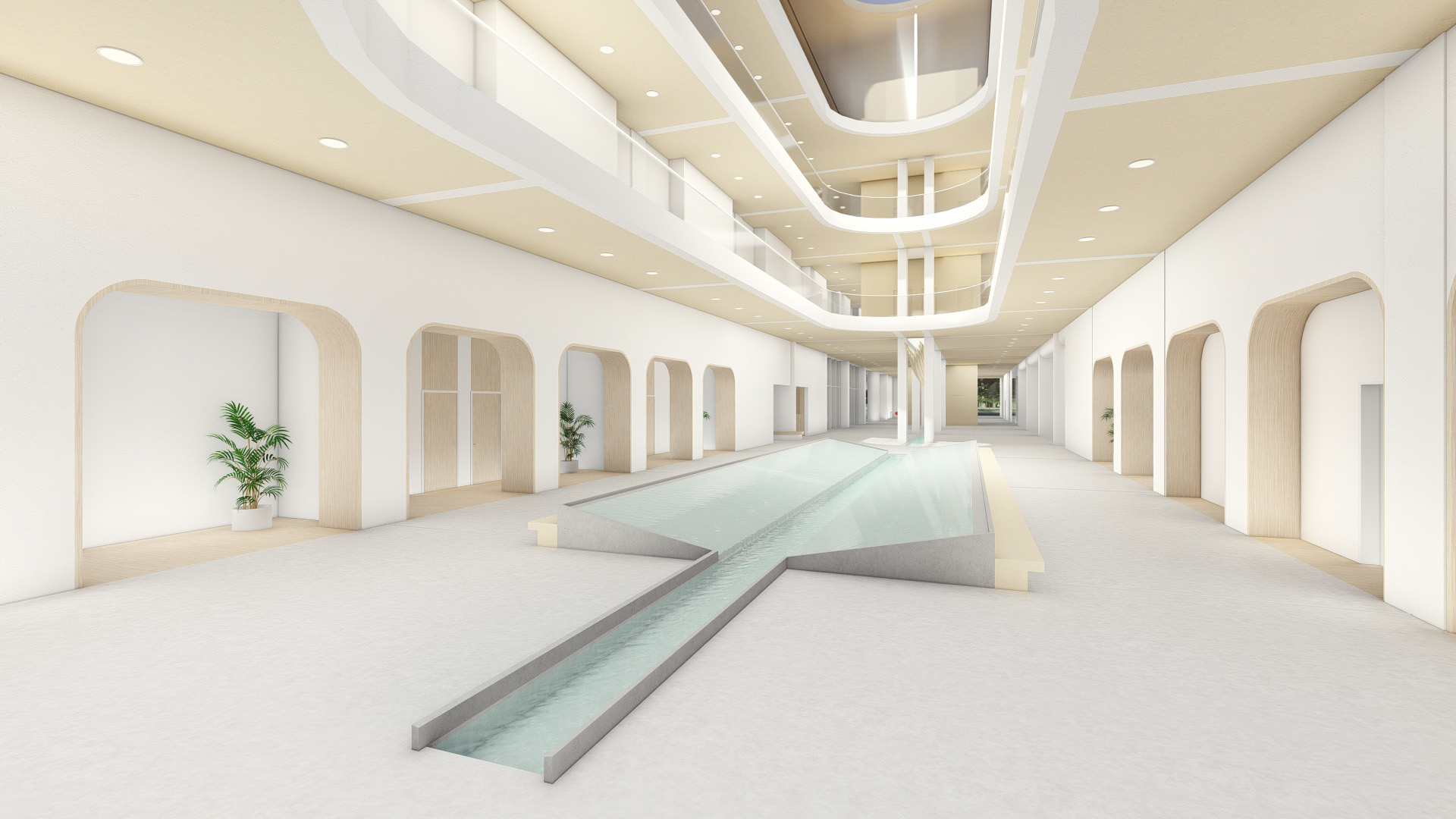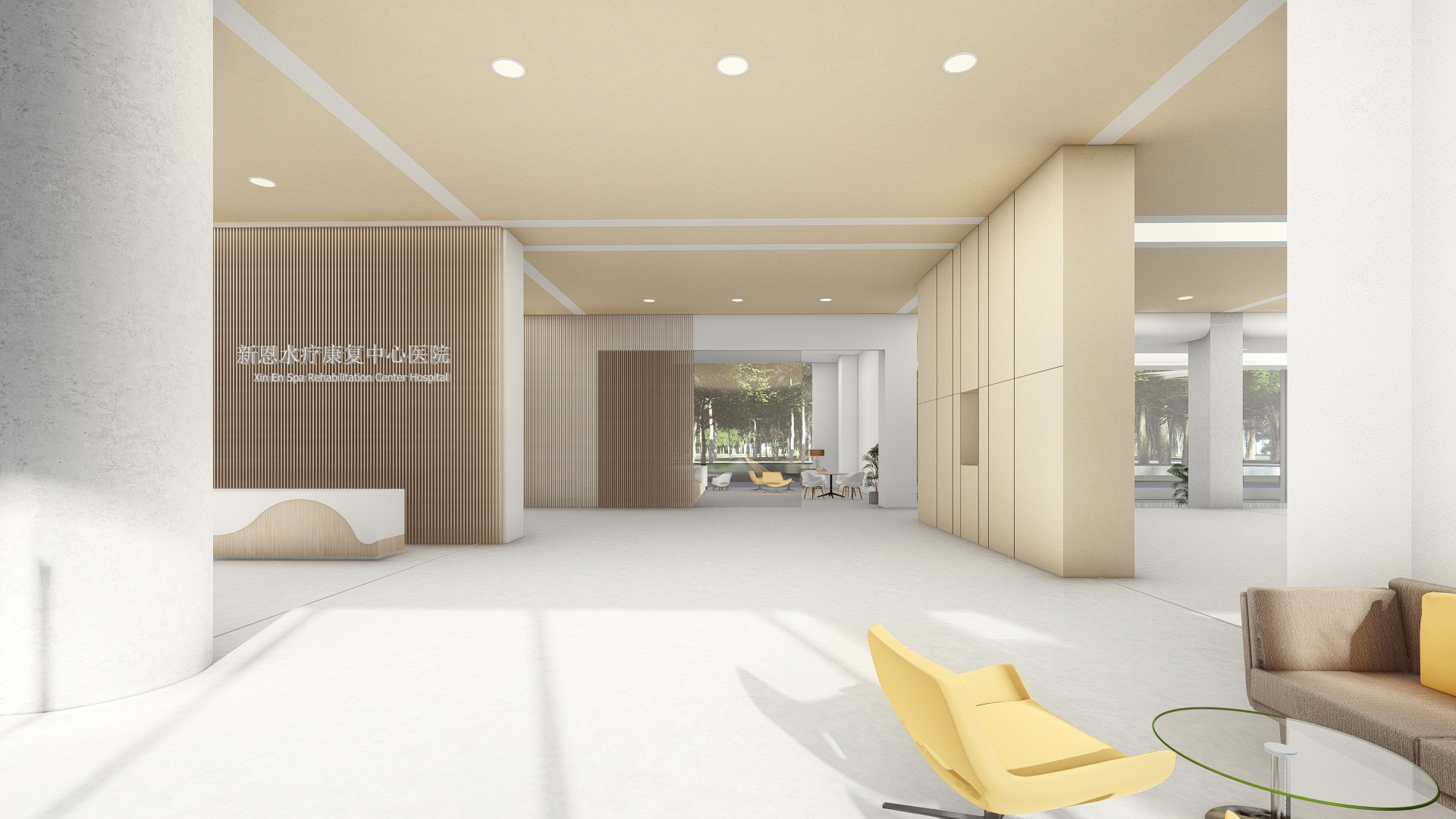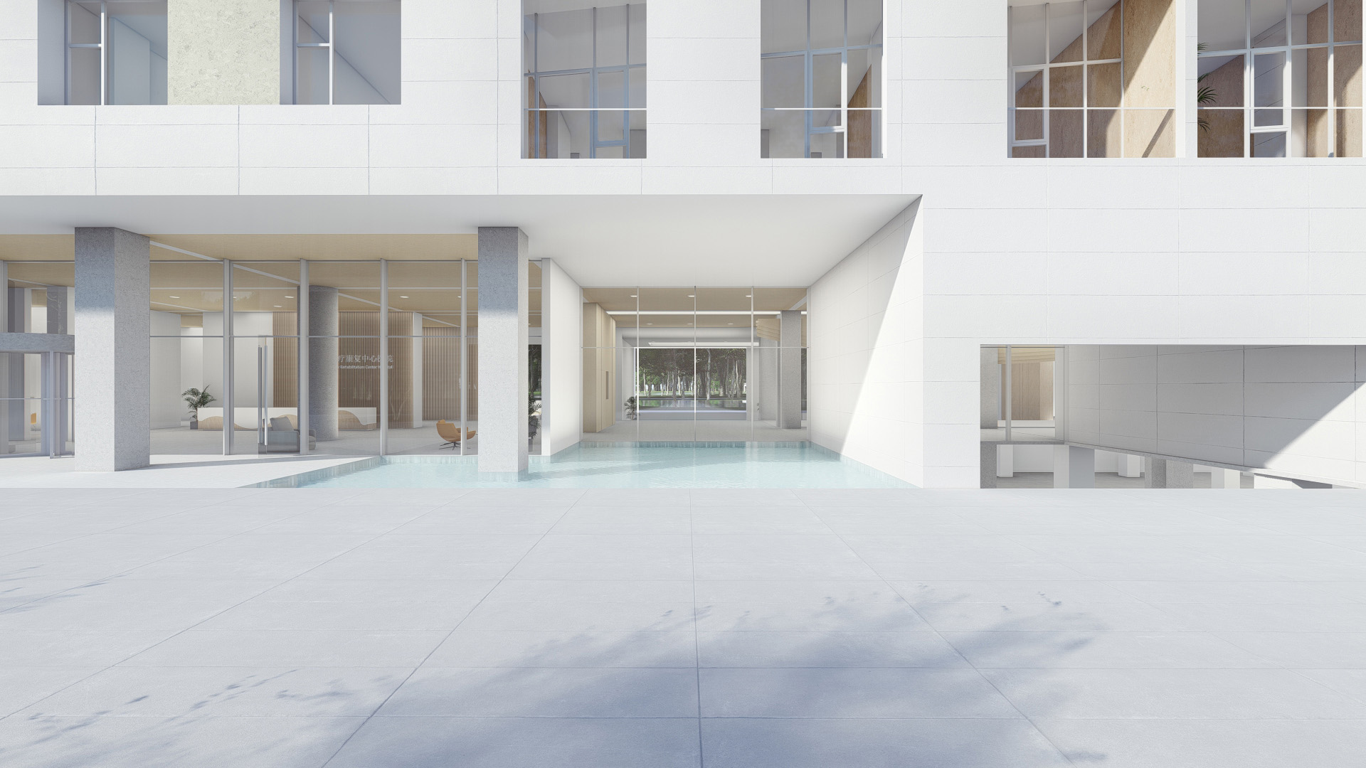 Water is the source of life, hydrotherapy rehabilitation is to treat in the way of water, so as to achieve rehabilitation and healing. Water is introduced to divide the space and guide the space to create a scene, thus creating a healthy shore. Light direction, future, life and hope, horizontal water vertical fill light, the water surface ripples, water more vitality. Bathed in light and water, life is restored, healthy and growing.