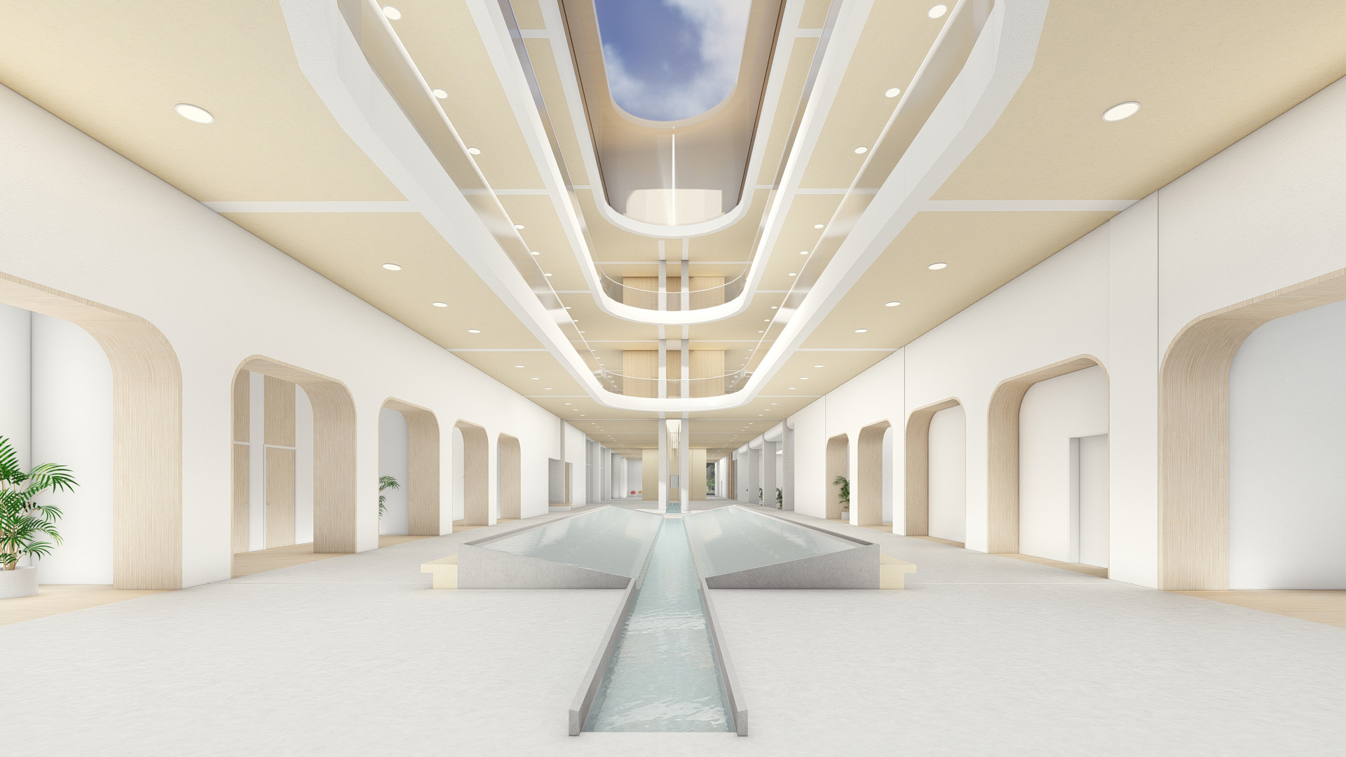 The comfort and permeability of sunlight and space are important factors to promote health and happiness. Because of the lack of sunlight, the environment in most hospitals is depressing and dreary, and it is even difficult to know where to be. The design uses light and water as a starting point to create a healing spa environment with gardens, courtyards and water features, thereby creating a hospital that is less like a hospital.