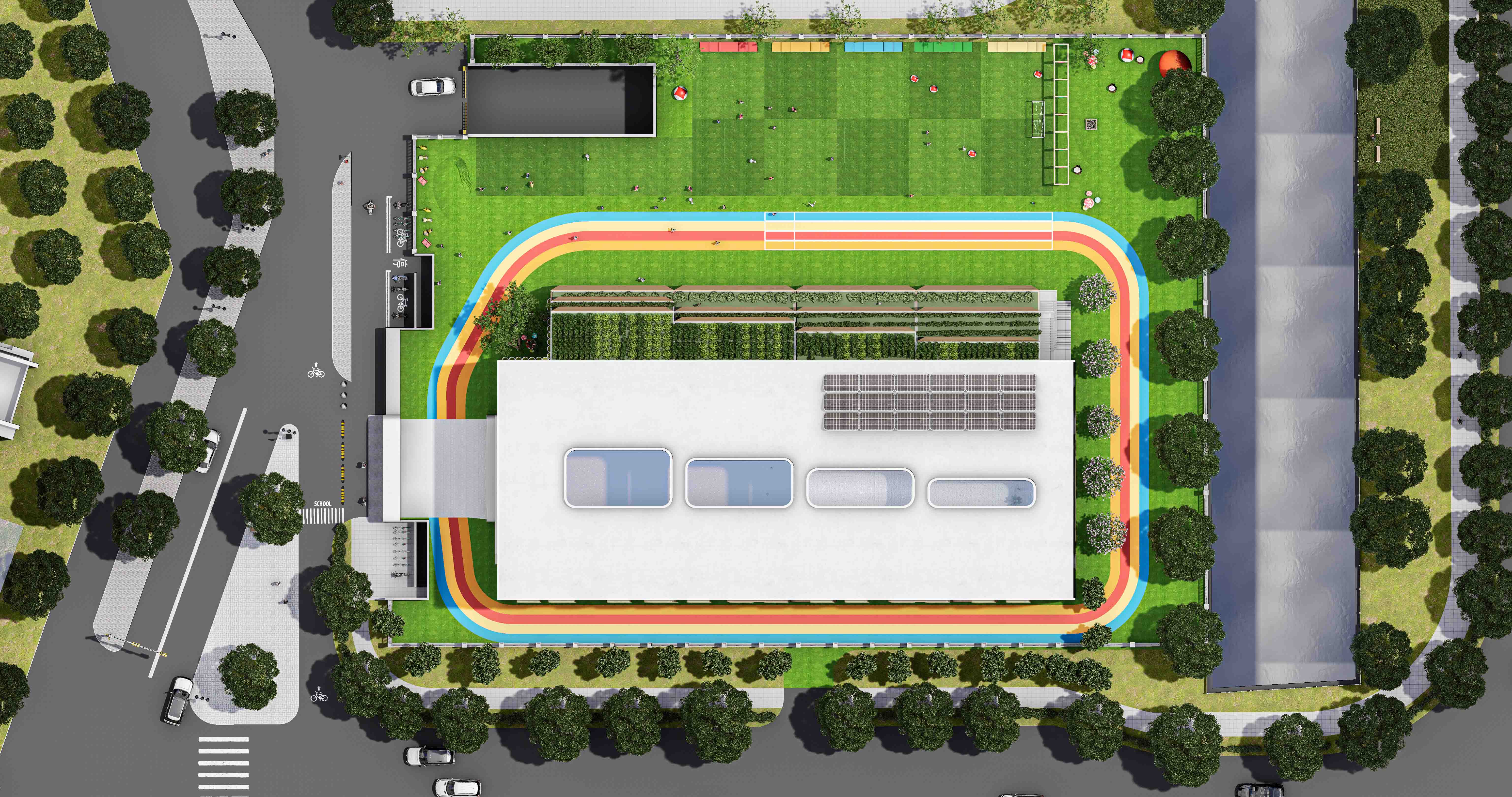 The project is inspired by building blocks. The classes are combined in the form of blocks to form a kindergarten street space experience, so as to build a free, happy and changeful environment for children. Plant green plants above the block backstage, and create a low-carbon ecological kindergarten, while also activating the facade of the kindergarten.