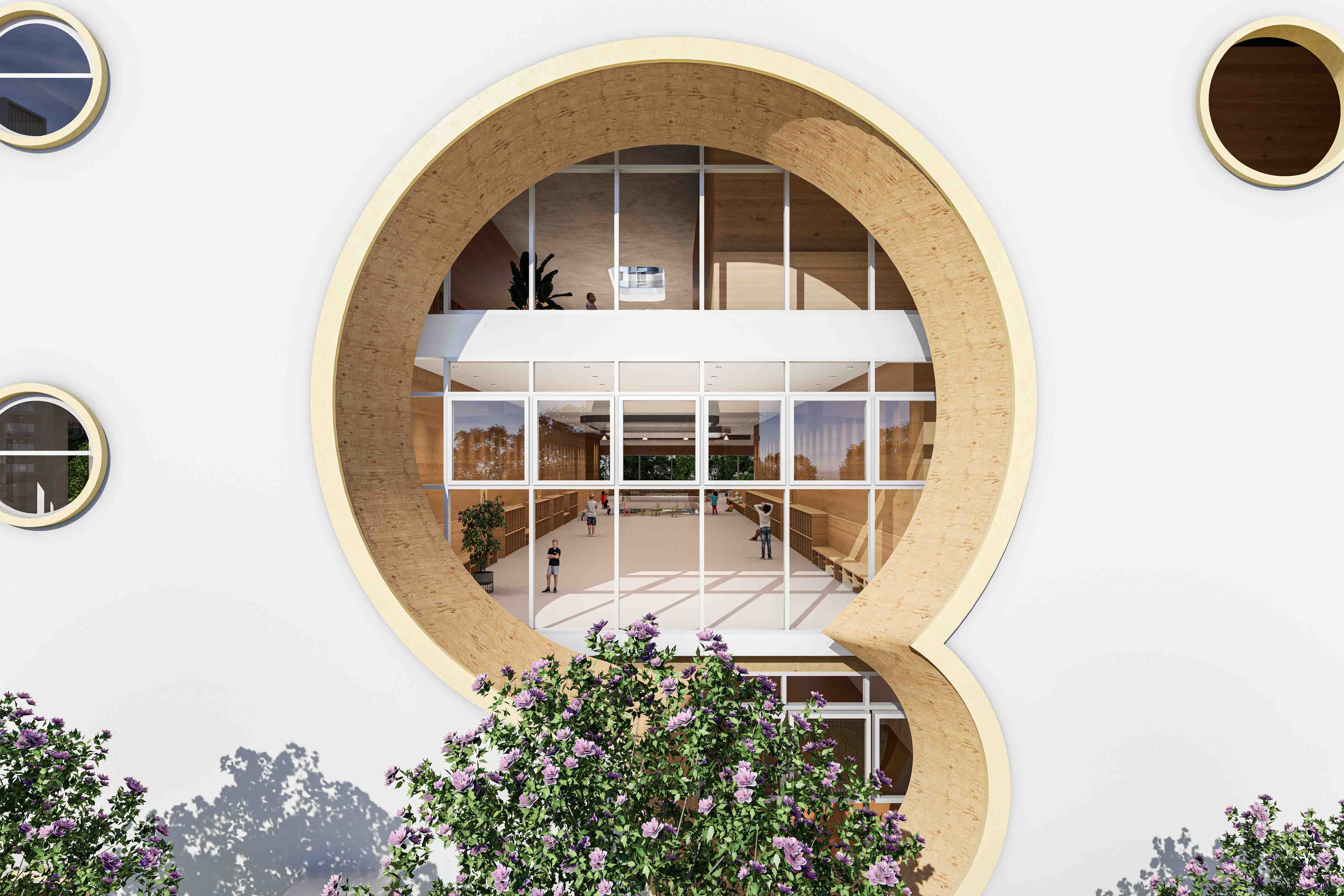The gourd-shaped round window hole in the west connects the internal children’s street with the park’s humanistic city, forming a visual communication.