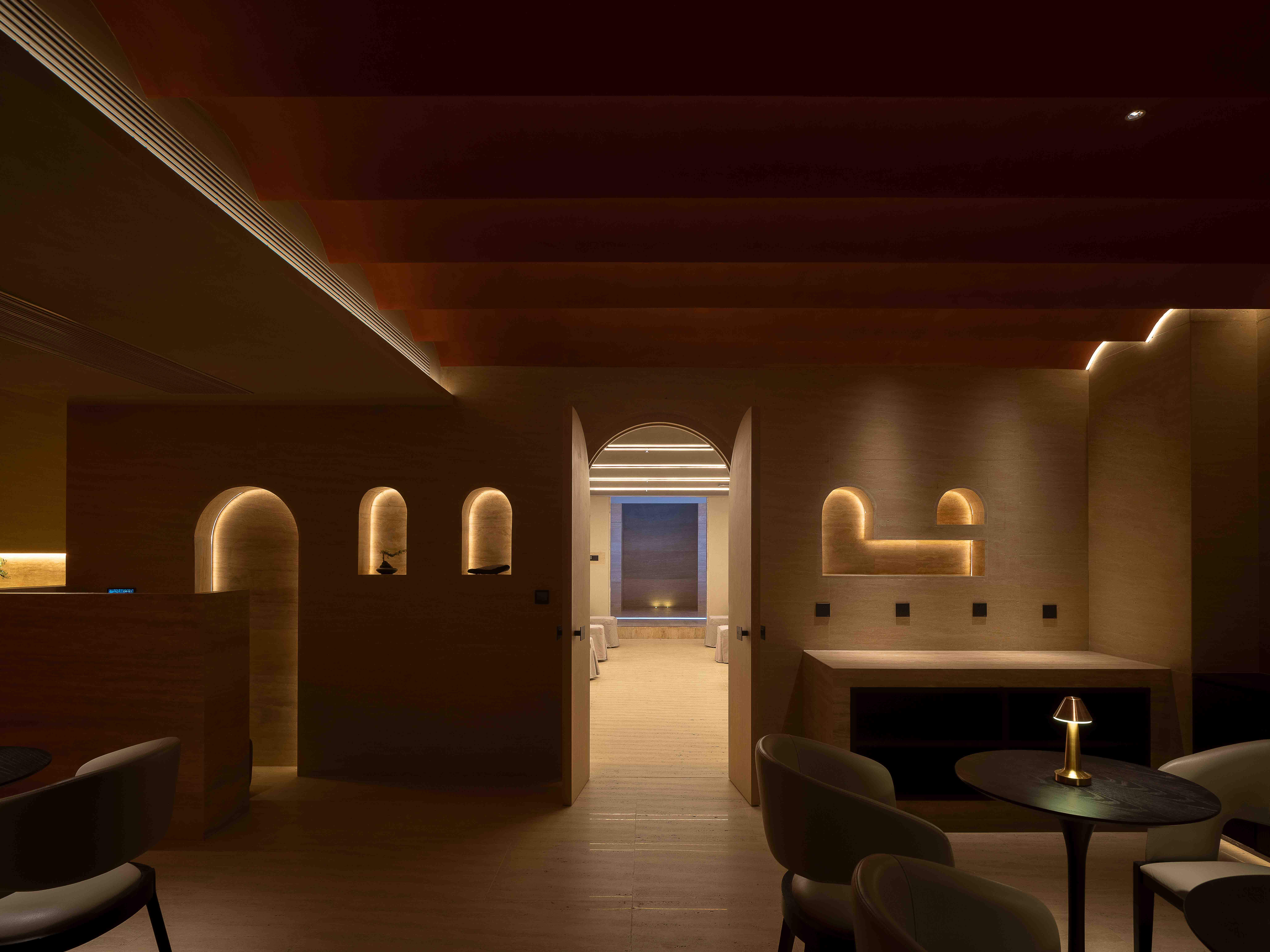 Arch, as an ancient architectural element in China and the West, creates space through arches while utilizing changes in the vault to divide areas and functions, creating a health and leisure experience place that runs through Chinese and Western cultures and connects ancient and modern times.
